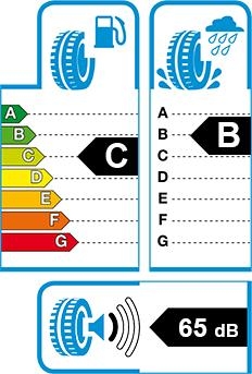 Po lewej stronie etykiety znajduje się skala klasyfikacji efektywności energetycznej mówiąca o wpływie opony na zużycie paliwa oraz związanej z tym emisji CO2. Pokonanie oporów toczenia ogumienia pochłania średnio 20% paliwa spalanego przez pojazd. Obniżenie oporów toczenia może znacząco przyczyniać się do ogólnej poprawy efektywności energetycznej transportu drogowego i do zmniejszenia emisji CO2 z nim związanych. Wartość współczynnika oporu toczenia opony jest mierzona na maszynie symulacyjnej i decyduje o klasie efektywności energetycznej opony. Jaka jest różnica między oponami klasy A i G? Opony znacząco różnią się pod względem oporu toczenia, który jest stopniowo zmniejszany poprzez technologiczne ewolucje kolejnych generacji opon. Różnica w zużyciu paliwa dwóch aut osobowych, jednego wyposażonego w opony klasy A i drugiego z oponami klasy G, jest znacząca, ponieważ sięga nawet 0,5 l/100 km. Roczna oszczędność paliwa to ok. 80 litrów (przy rocznym przebiegu 15 000 km).